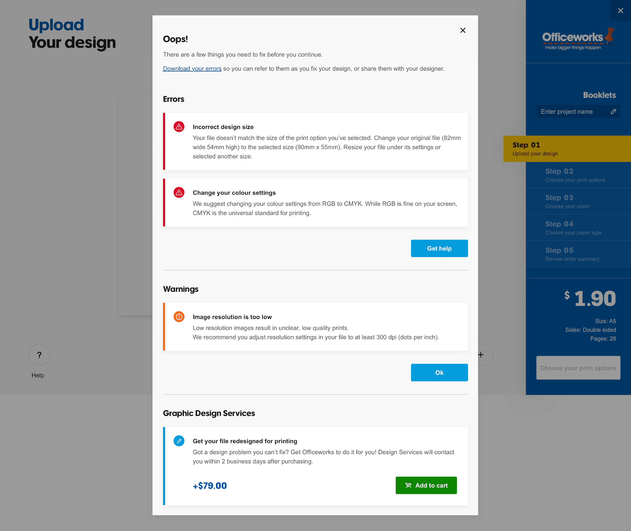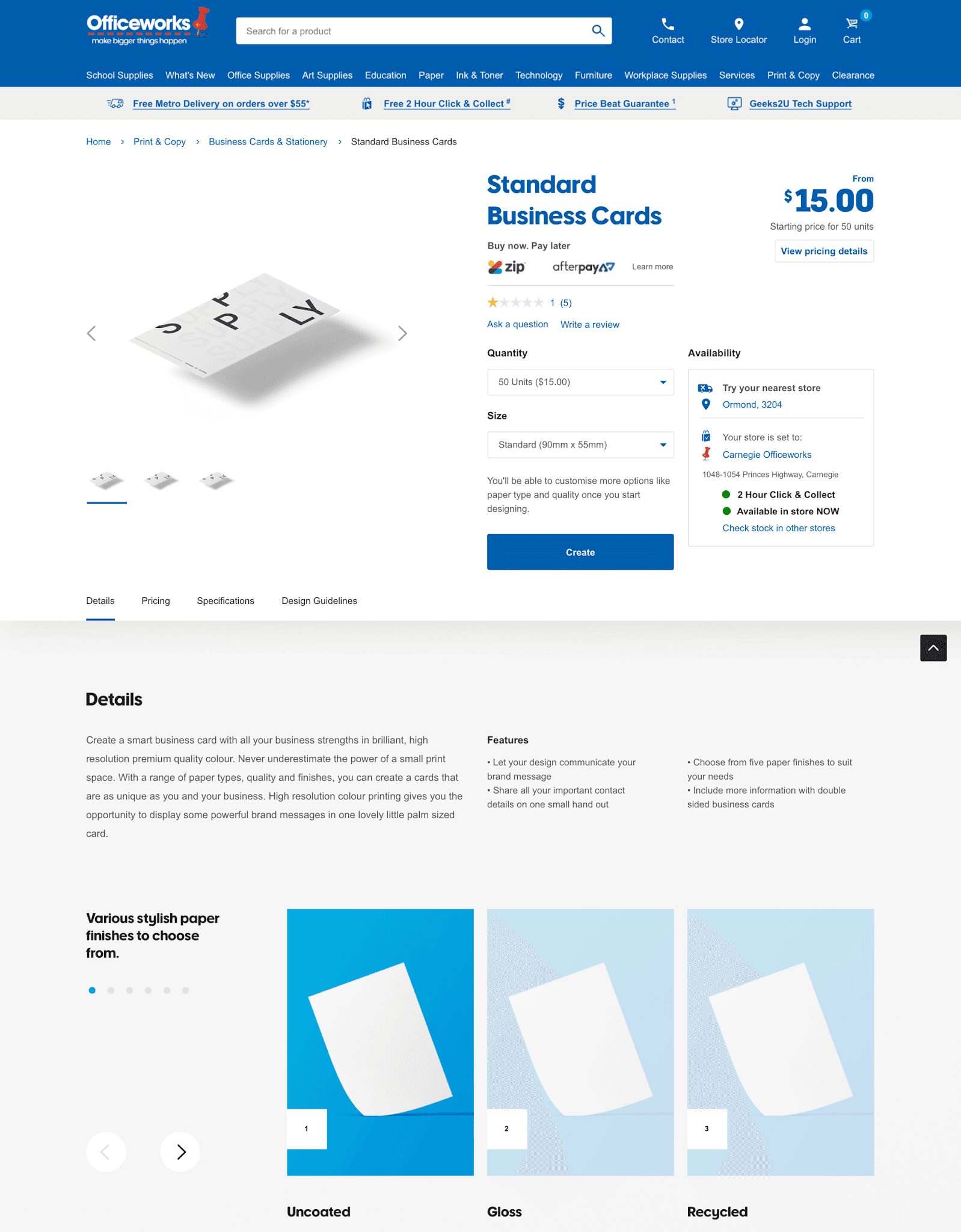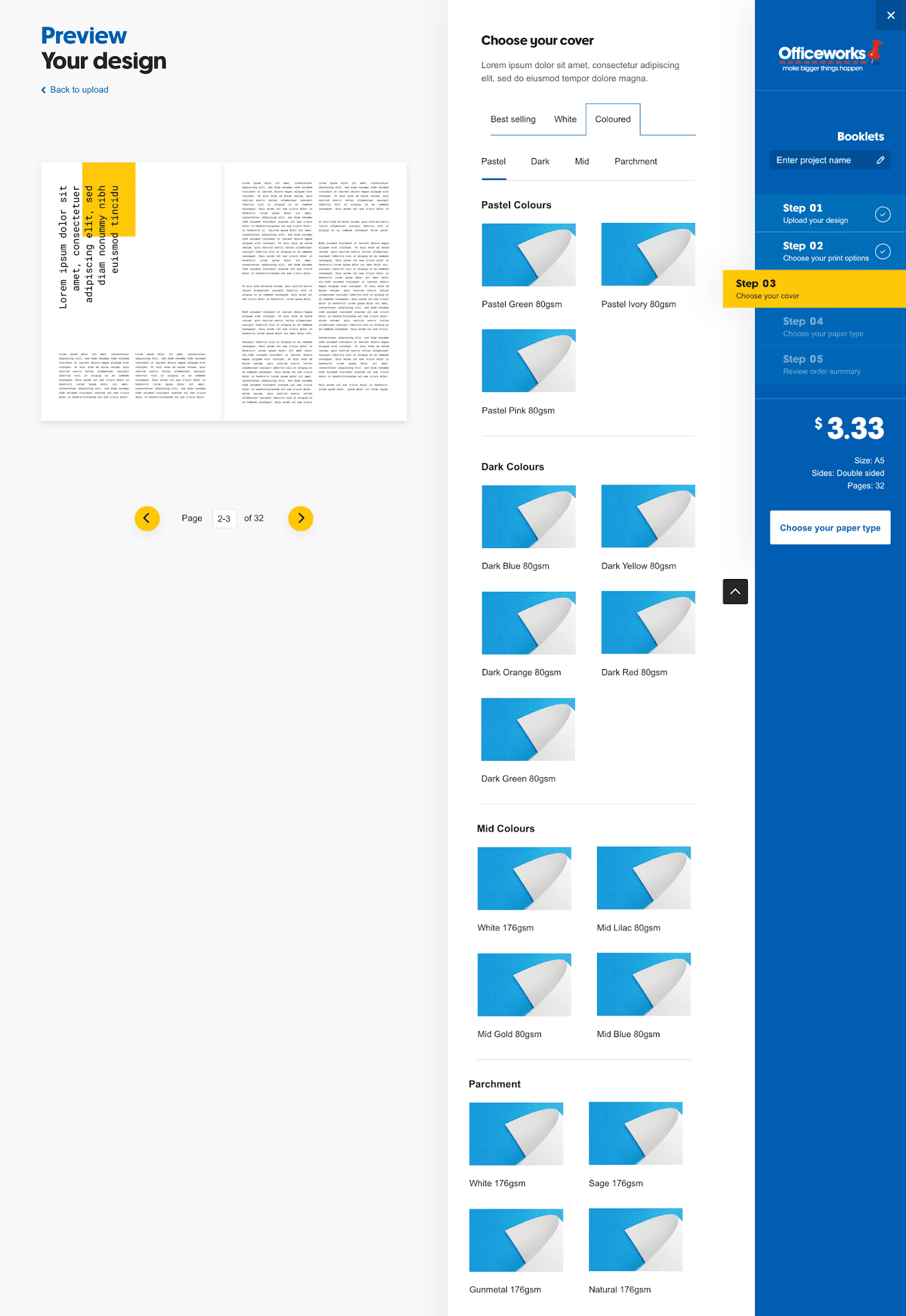 The existing configuration tool to customise a print product was not user-friendly or intuitive. Our design challenge was to enhance the end-to-end experience for ordering and customising over 400 print products using Officeworks’ Print, Copy and Create’s online configuration tool.